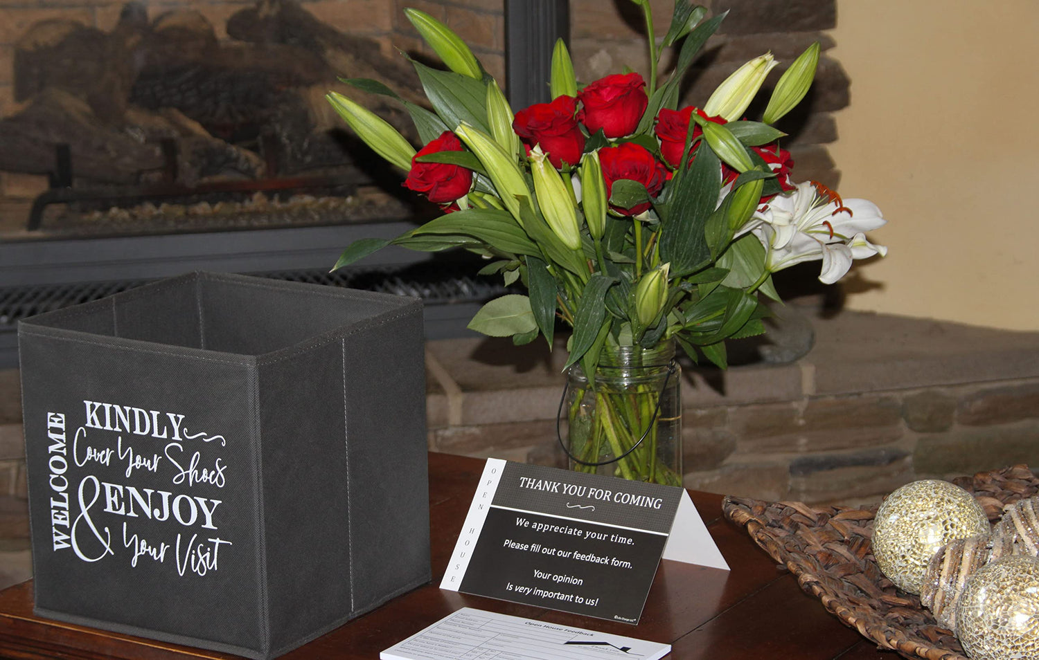 - ✅ Open House Supplies. A MUST HAVE for Realtors or For Sale By Owners (FSBO) who hold open houses. Open houses can be hectic and are often hosted by only one Realtor or Homeowner. This shoe cover storage box politely directs unattended buyers to cover their shoes. Place inside the entryway and fill with your favorite disposable non slip indoor shoe covers.